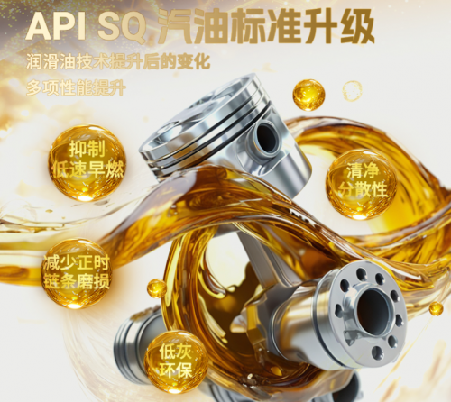 随着发动机小型化、涡轮增压化、缸内直喷技术的普及,API SQ标准应运而生,聚焦四大核心性能升级:抑制低速早燃、减少正时链条磨损、提升清净分散性、强化低灰环保特性。